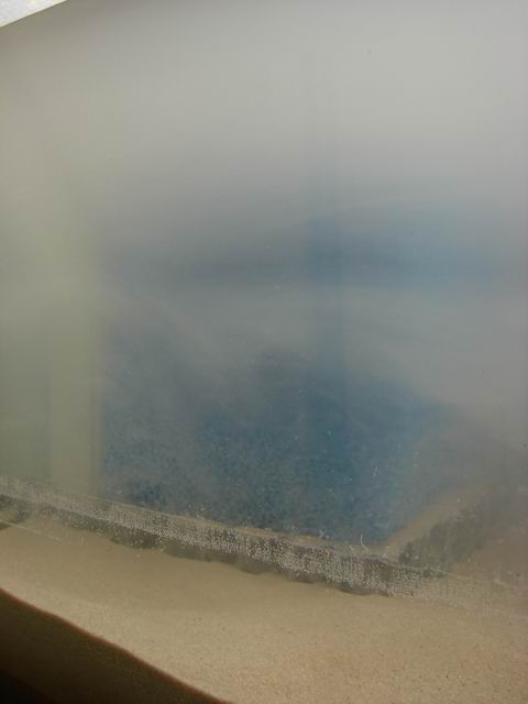 Durch den Nebel lässt sich die Trennung der unterschiedlich warmen Wasserschichten gut erkennen